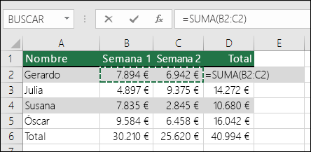 realización de sumas con excel